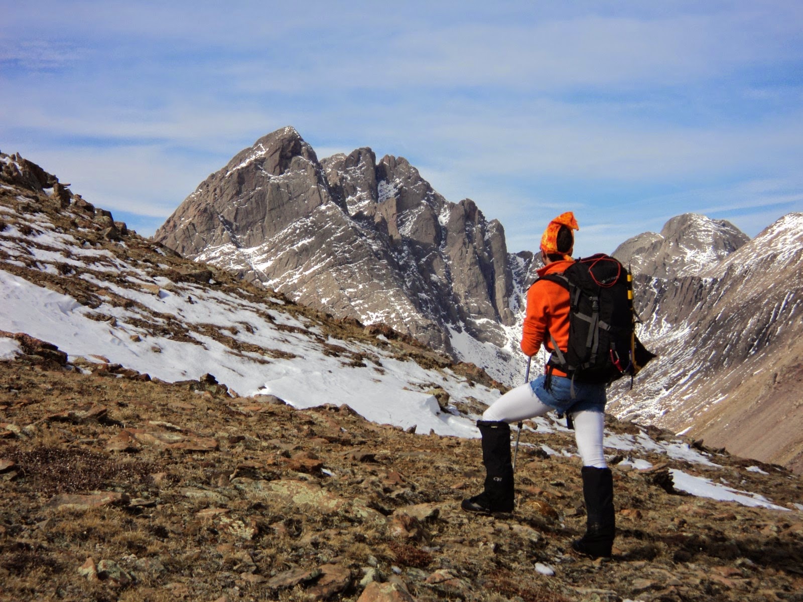 Snow was unavoidable for a couple hundred feet after treeline, about six inches over slick tundra and wet rocks. This was the most tedious part of the route. Higher on the ridge the wind had blown it mostly clear, and in many ways it was reminiscent of summer. Dry tundra, T-shirts, sweat and size 14 boys jorts.