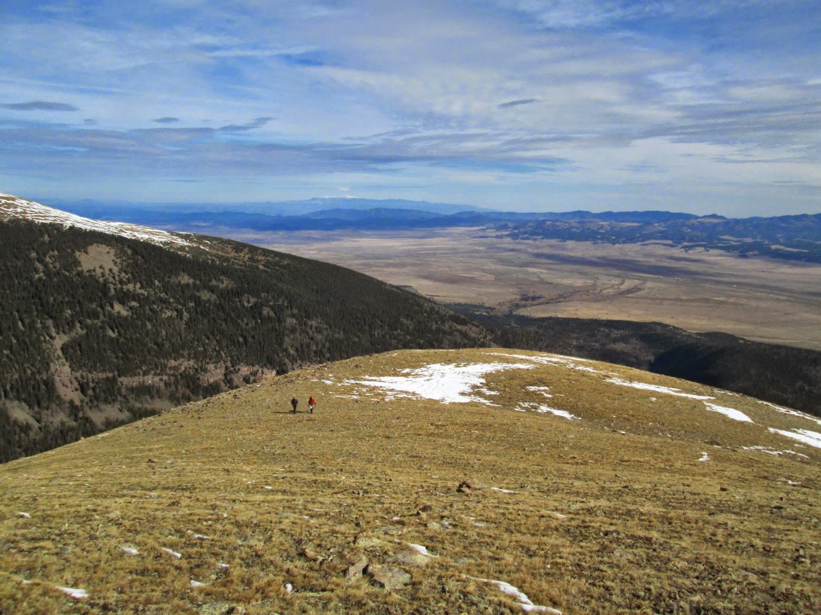We lounged on the summit for about an hour, drinking a couple beers and watching a storm roll in over Kit Carson and the Crestones. If possible, the clouds made the Sangres even more beautiful.