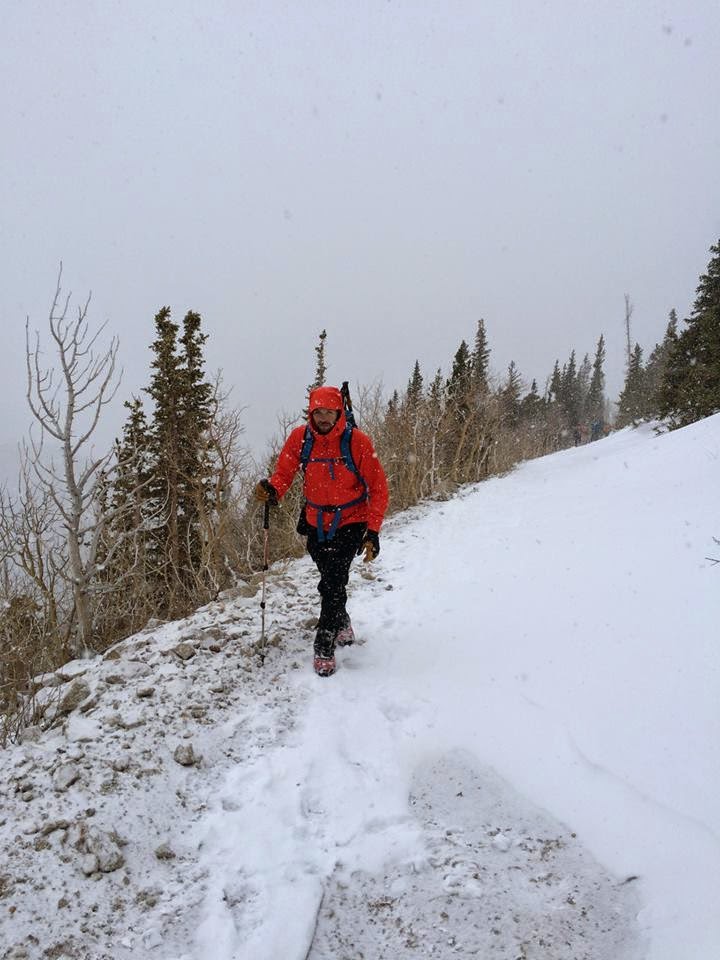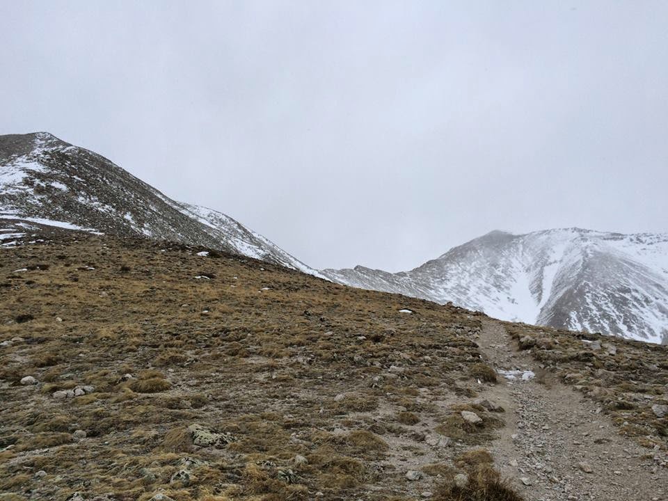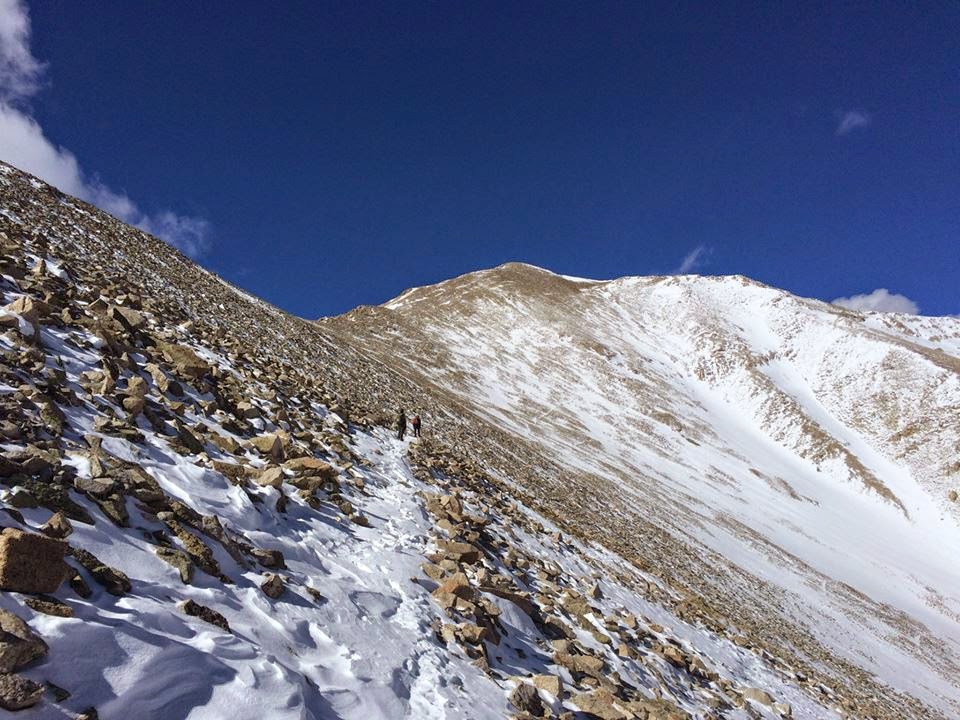 The “easier option” was still kind of a pain. The Mt. Princeton trail consists of large, loose, annoying talus. Add a foot or two of powder on top of it and the going becomes very slow and tedious. Jerry continued leading the way as the weather began its preordained decline.