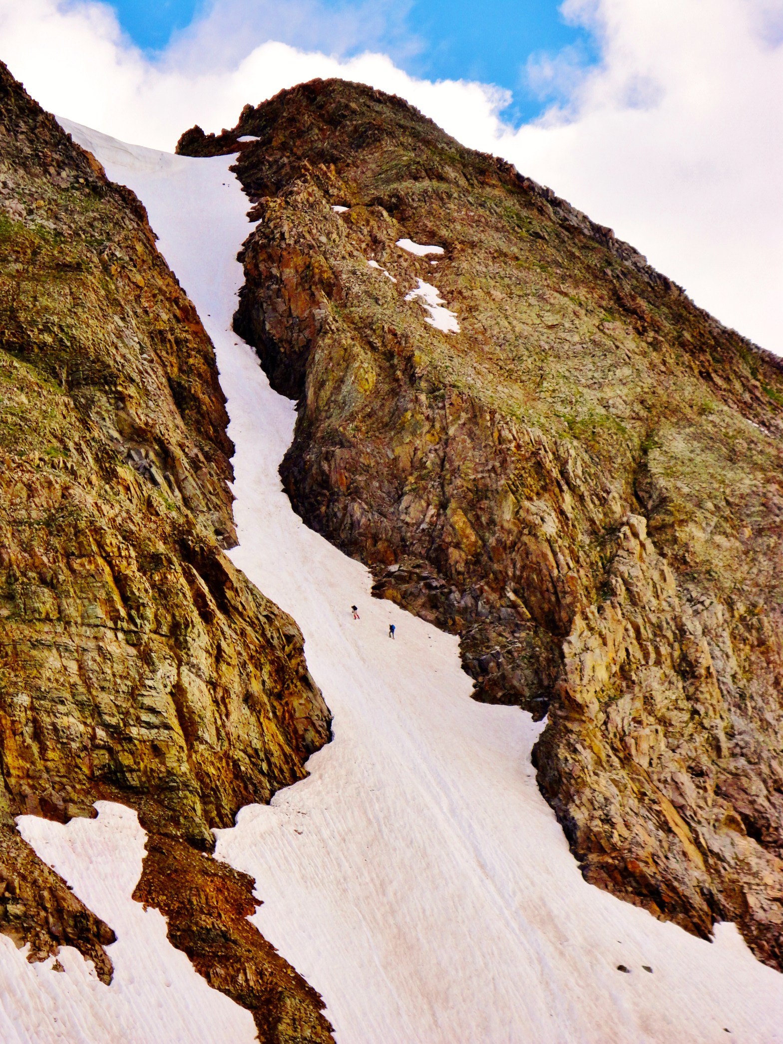 Mountain(s): Conundrum Peak (14,060′) and Castle Peak (14,265′) Route: Conundrum Couloir (Steep Snow) Date: July 11, 2015 RT Distance: 14.5 miles RT Gain: 4,850′ RT Time: 10 hours Climbers: Ben, Jeff Summer is here. It’s crazy how fast the Colorado mountains transitioned from buried to dry. Most standard 14er routes only require a few short snow crossings these days, which isContinueContinue reading “One More Drink, and I’ll Move On (Conundrum Couloir)”